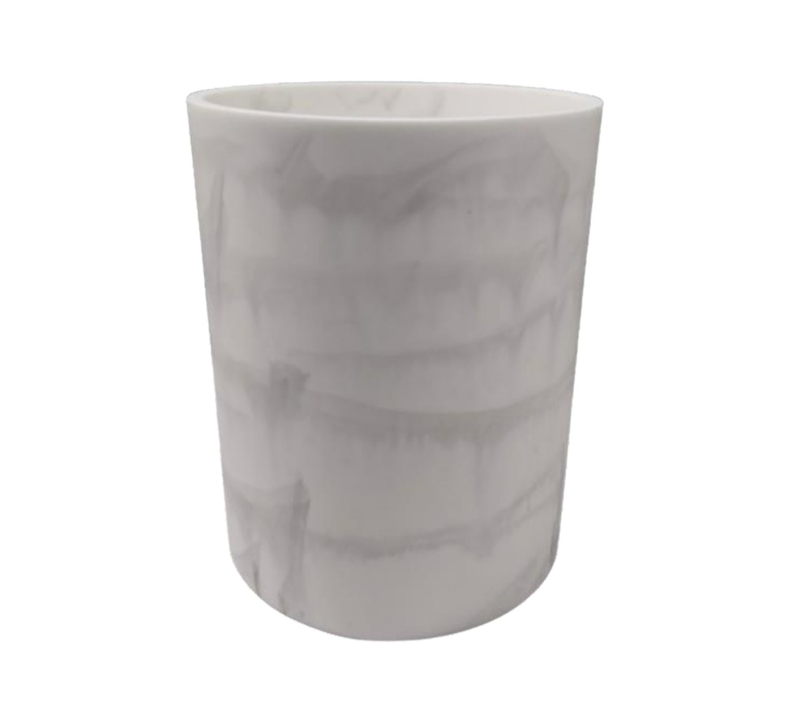 Cuenta con un diseño atractivo en color blanco con acabado en mármol, que complementa diferentes estilos de decoración. Está fabricado en resina, garantizando resistencia y fácil limpieza. Con dimensiones de 20 x 20 x 25 cm, es ideal para uso en oficinas, cocinas y baños.